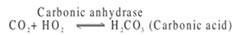 - CO2 from the tissue diffused into the plasma and along with the water it forms carbonic acid which dissociated into HCO3- and H+. This reaction is catalysed by an enzyme called carbonic anhydrase present in the plasma membrane of RBC and plasma.